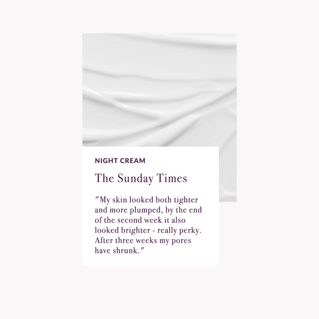 “The most effective night cream I have ever tried. My husband actually noticed my more even skin tone and reduction in redness within a few days! I have sensitive skin prone to occasional break outs when using certain products and I had no issues at all. Wonderful stuff!”